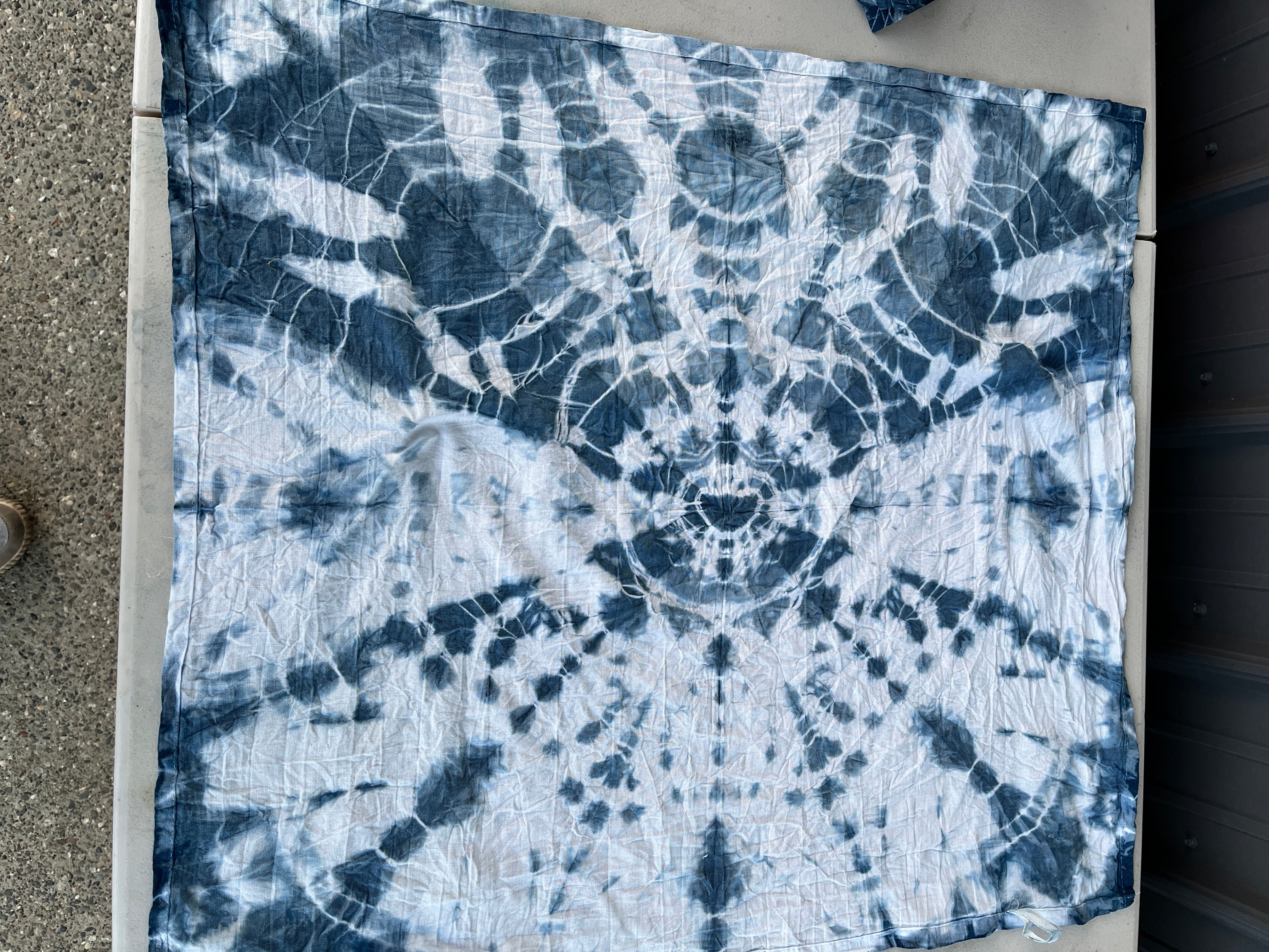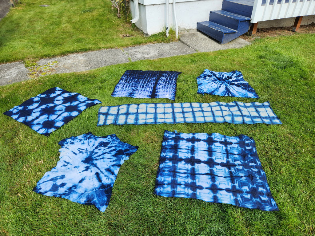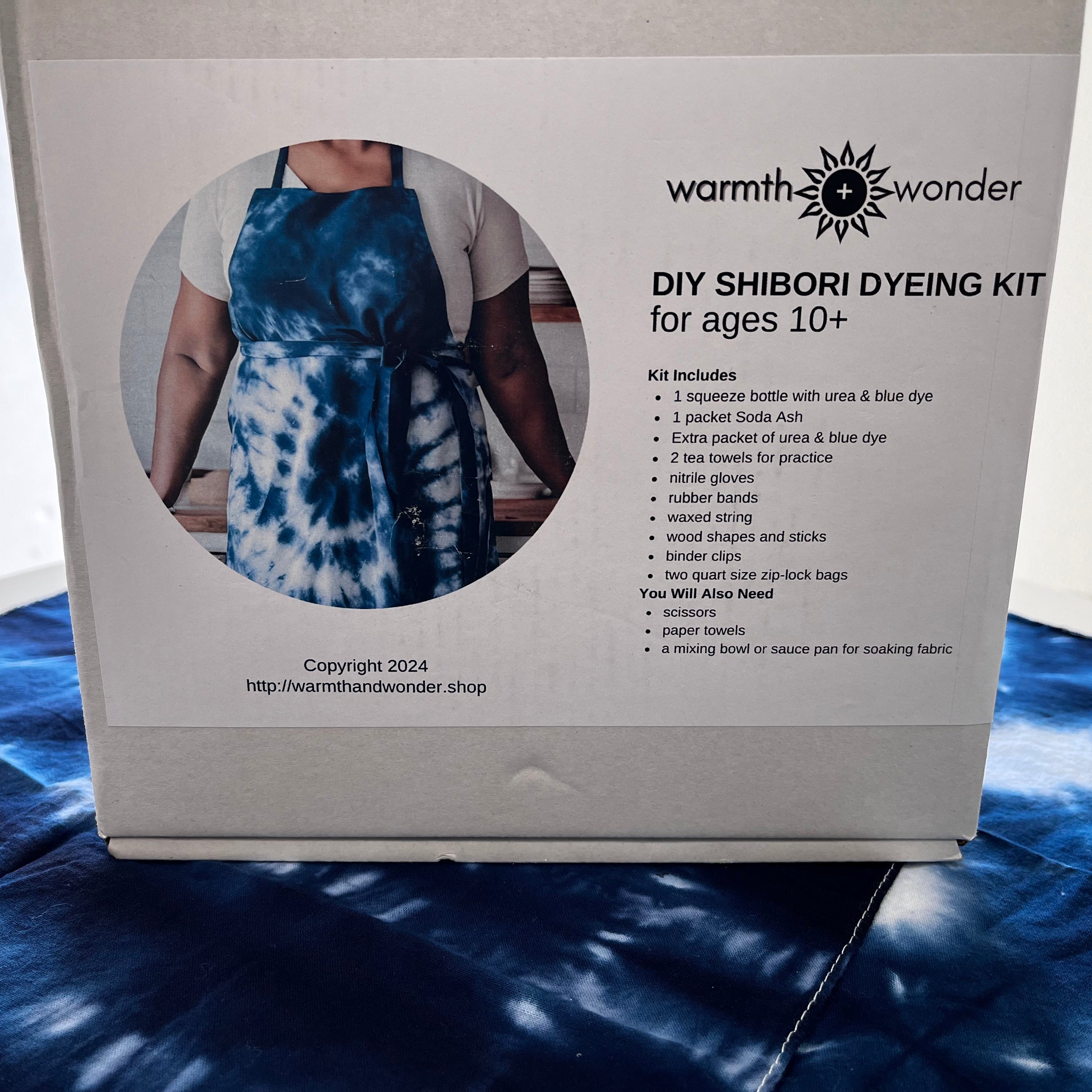Explore the art of Japanese style tie dye with this fun kit. This kit results in the look of indigo dye, but uses fiber reactive dye to achieve the look without needing buckets or even a sunny day (can be done inside). Your kit includes gloves, dye, rubber bands, twine, wood shapes and sticks, soda ash, 2 large tea towels for practice plus full color instructions demonstrating various techniques.