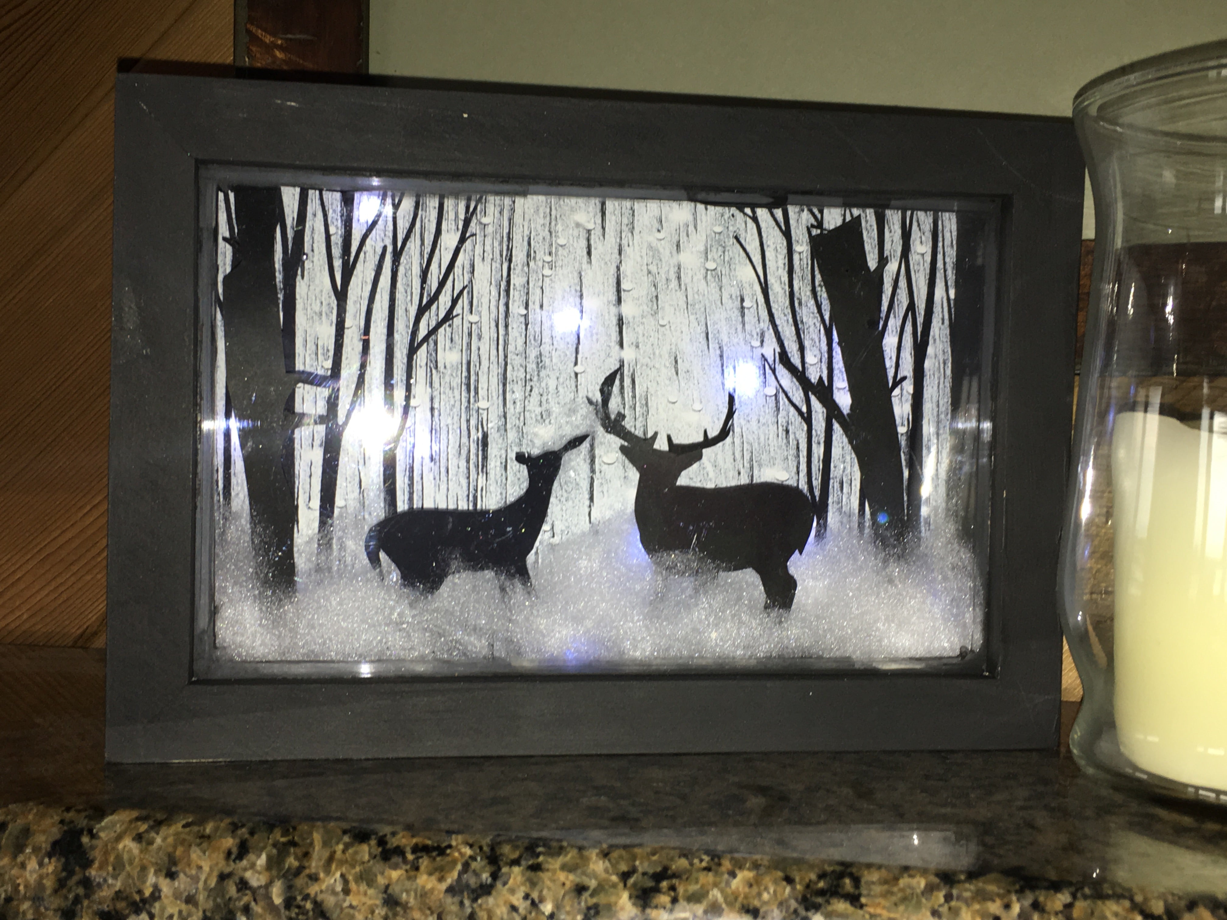 In this family friendly workshop, make a battery operated light-up shadow box featuring deer in a winter forest. Each participant will take home an 8.5 x 11 shadow box that will look elegant on your mantle or make a special gift for a friend or family member.